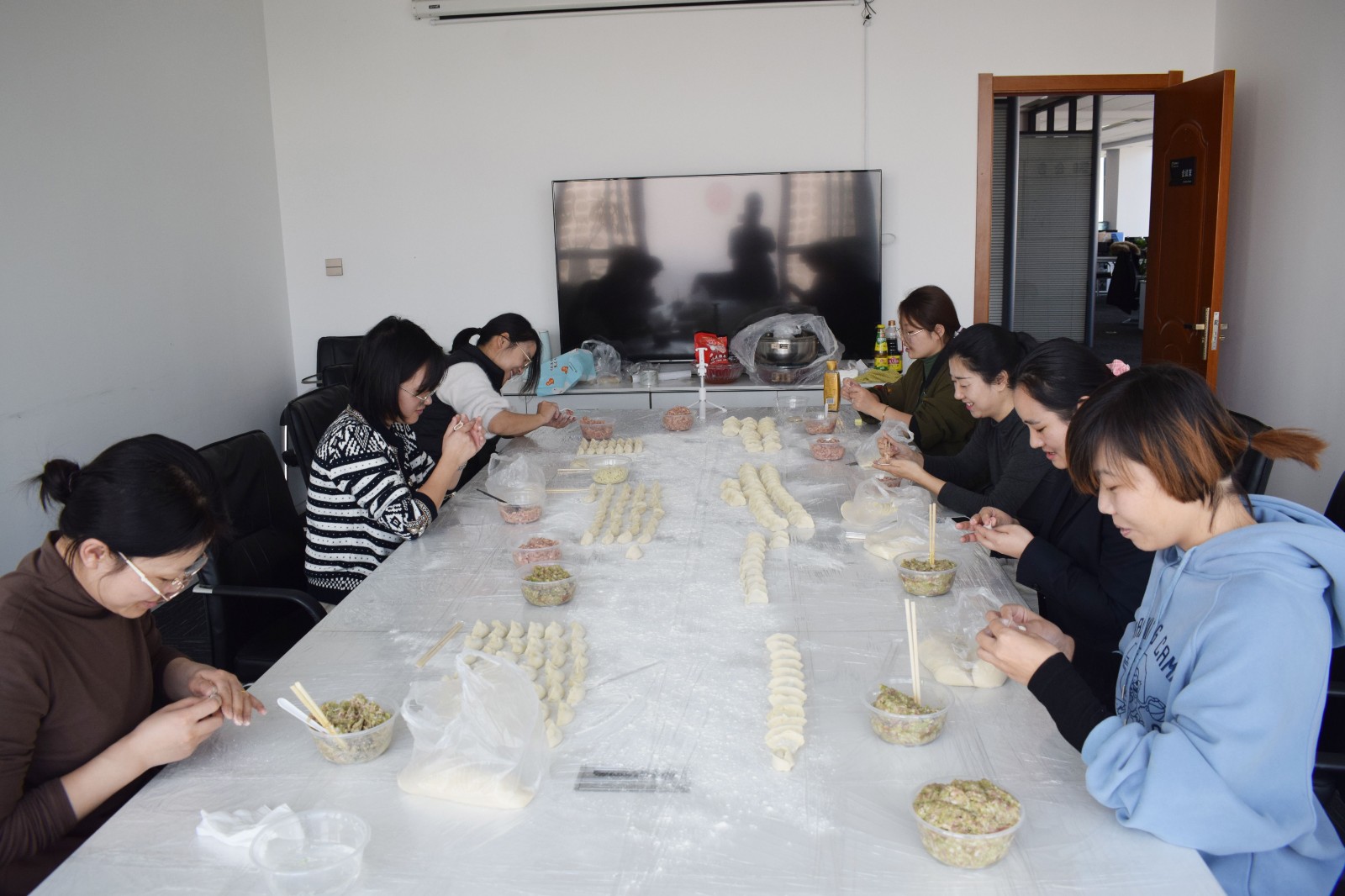 “素衣臺(tái)案前,巧手賽天工。雪花紛飛舞,皎月平空現(xiàn)。清水飄芙蓉,元寶落玉盤(pán)。饕餮世間味,最是此物鮮。”冬至是二十四節(jié)氣的一個(gè)重要節(jié)氣,也是中華民族的傳統(tǒng)節(jié)日,在這個(gè)時(shí)候來(lái)一份屬于冬至的美食,也是對(duì)不久之后春節(jié)團(tuán)圓的期盼。為進(jìn)一步弘揚(yáng)民俗文化,繼承傳統(tǒng)習(xí)俗,豐富員工的工作文化生活,增加凝聚力。12月21日上午,人事行政部組織辦公室員工舉辦包餃子活動(dòng)。